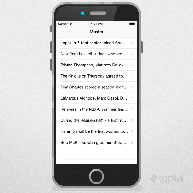 along with our Mantle request and response models to retrieve New York Times articles related to basketball that were published during the first seven days of June 2015. Once we have this list of articles, we’ll persist it in Realm. Below is the code that accomplishes this, placed within the viewDidLoad method of our app’s table view controller.