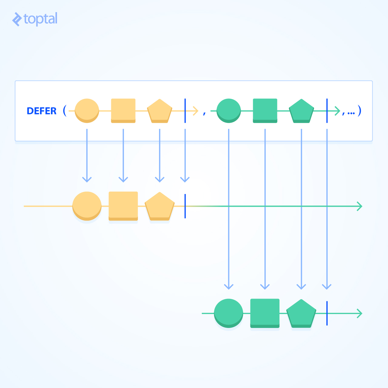 defer()and its variants to postpone computation execution until subscription.- Cold